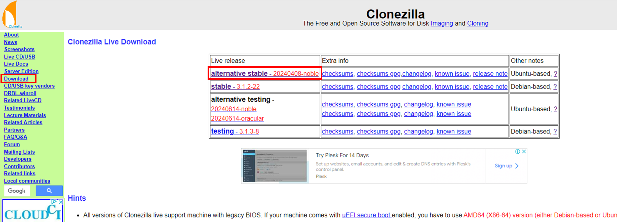 클론질라는 기본적으로 다운로드된 파일은 부팅가능한 USB와 같은 형태로 변경 해주어야 합니다.