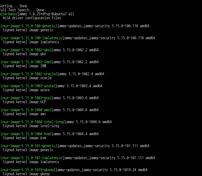 원하는 커널 버전이 있는지 찾기 위해서는 apt search를 이용한다.