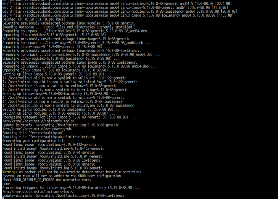 나는 1>6번이 원하는 5.15.0-88-generic 버전인걸 확인했다.